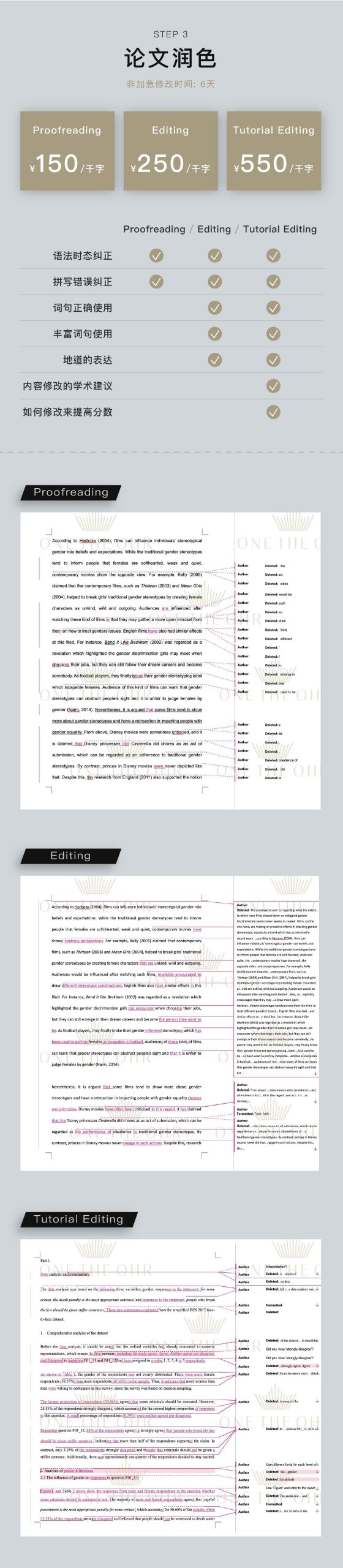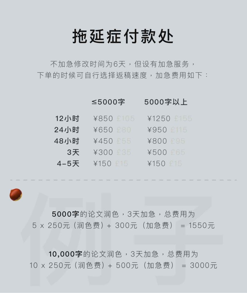 我们润色有三档,150元/1000字起,选中间档Editing的同学最多。